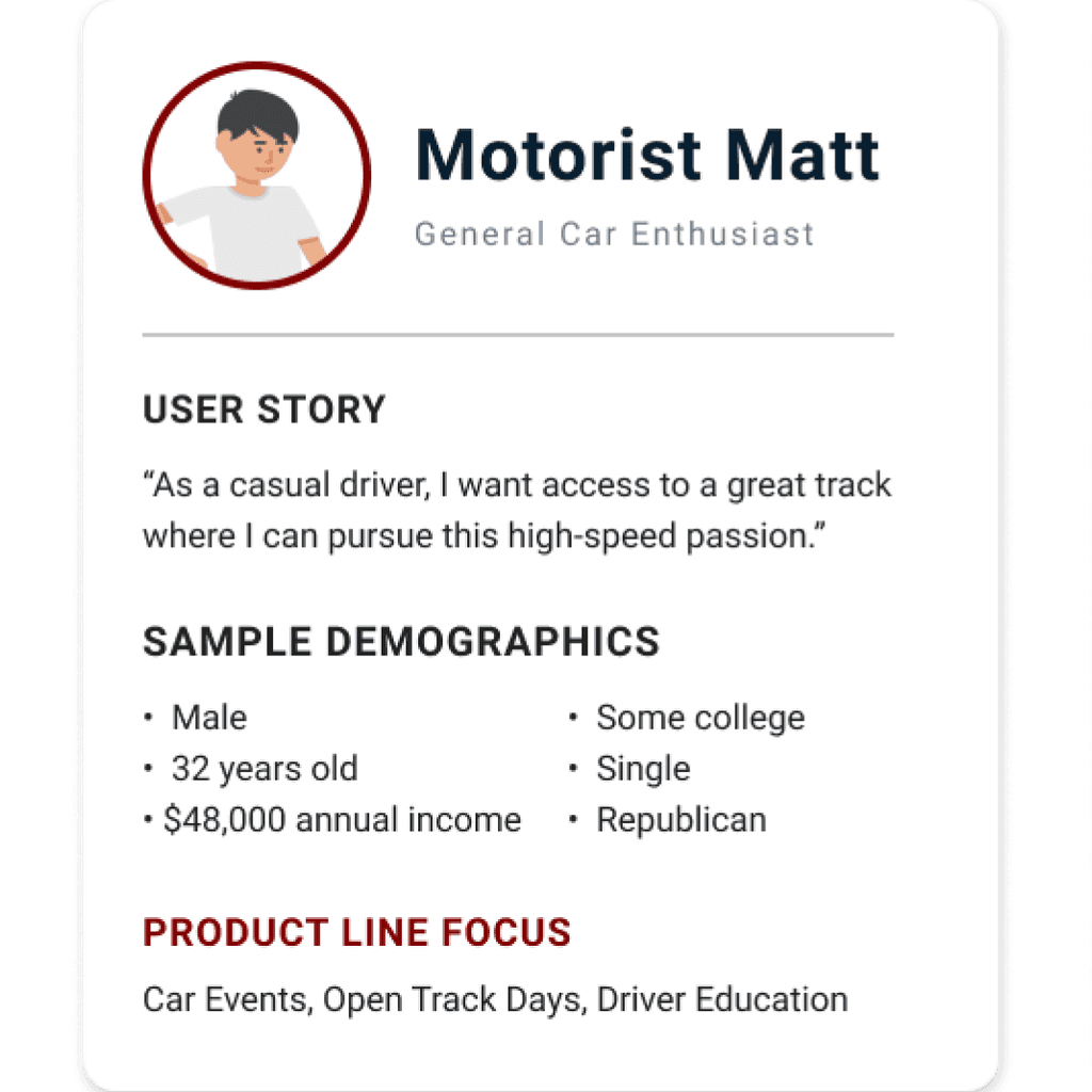 NOLA Motorsports is an expansive motorsports complex near New Orleans offering world-class competition surfaces. My team was acquired to help create strategy for a customer-base that was: